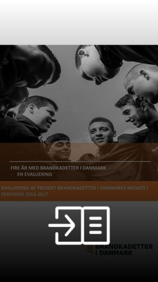 Rapporten indeholder en samlet evaluering af de to første år (2013-2015) fra projektideen om Brandkadetter i Danmark blev skrevet frem i første ansøgning, til etablering af lokale afdelinger og et tæt forgrenet samarbejde med en lang række instanser og organisationer.